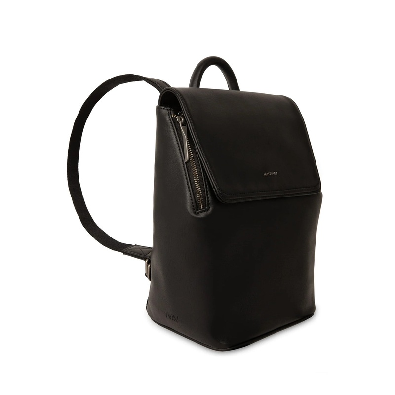 Small backpack with adjustable straps. Top flap with magnetic closure. Expandable gussets at the top to widen the opening.