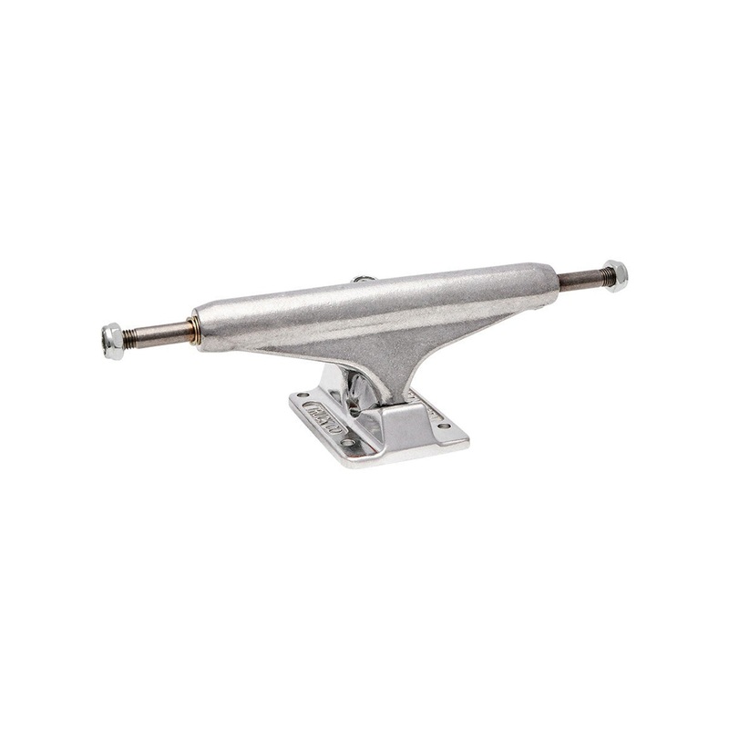 Ultra lightweight, mid-profile truck with the highest strength to weight ratio. 15% lighter than Stage XI 53.5mm tall for optimal performance and wheel clearance with wheels 54mm and under. A356 T6 Aluminum Hanger The best lightweight aluminum alloy heat treated to T6 condition for strength, durability, and grind feel. Forged 6061 Aluminum Baseplate Aircraft grade forged aluminum allows a thinner part while still maintaining high density and strength. Solid Ti64 Titanium Axle Ultra light weight Titanium axle saves weight while maintaining a high level of strength and rebound. Hollow Chromoly Kingpin Highest quality hollow Chromoly steel for durability and weight saving.
