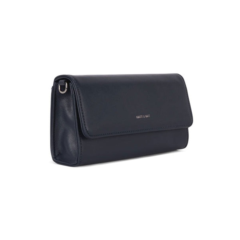 Structured crossbody bag with a detachable strap, flap with a magnetic snap closure, and a slip pocket on the front and back of the bag.
