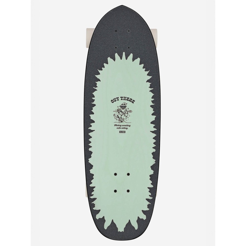 Wide short-wheelbase cruiser with Slant surf/skate trucks for a surf-like carving experience. The Frothy 30″ Surf Skate in Sea Saw is constructed from Resin-7 hard rock maple with a mellow concave with kicktail, clear griptape with top art and a paint dipped deck.