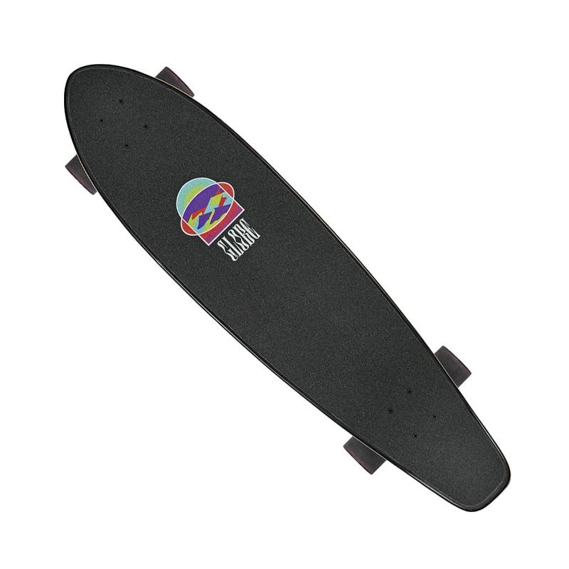 The All-Time in Sharps On The Brain is a long wheelbase Resin-8 hard rock maple cruiser shapewithmellow concave and kick tail. Featuring 150mm Slant reverse kingpin trucks, 65mm 78a wheels and black griptape with print. Neon artwork with prism foil details by featured artist Emily Lynn Perelman.