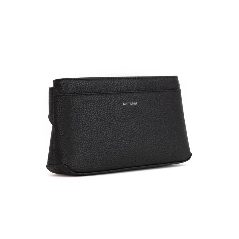 Belt bag with a zippered main compartment and a front slip pocket with a press snap closure. Buckle belt strap for comfortable wear around the waist or across the chest. The front pocket can fit a large smartphone.