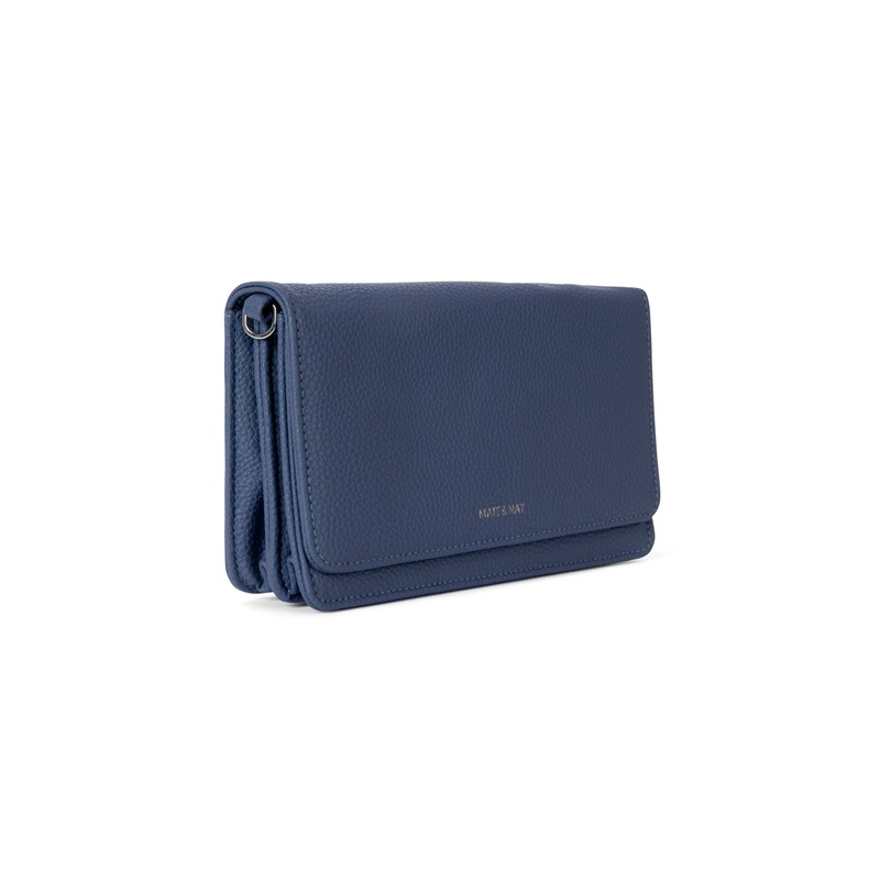 Structured crossbody bag with removable and adjustable strap. Front flap with magnetic snap closure. Accordion side gusset.