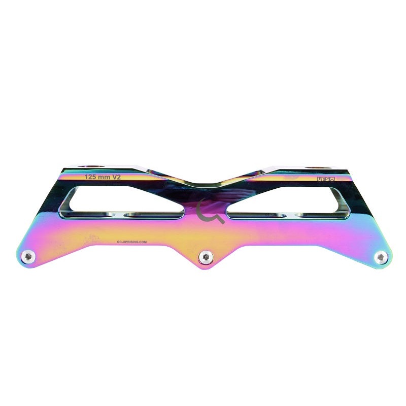 Pair of Ground Control Tri Skate Frames V2 125MM with Oil Slick finish. These frames are ideal for people who have an aggressive boot that they want to convert into a fast urban skate.