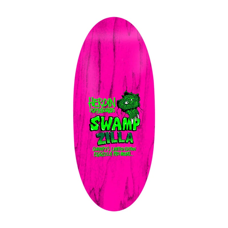 Heroin Swampzilla Skateboard Deck measuring 13″ wide. Free plain black grip included with all our skateboard decks.