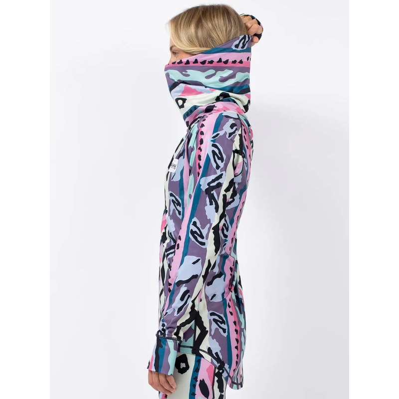 Be extra toasty in our base layer that combines streetfashion and maxed out functionality, with a retro pattern. The extended back and the integrated gaiter neckwarmer that is higher in the back, making it easy to tuck it under the helmet or beanie for warmth, protects you on cold winter days. The flatlock seams prevent chafing and the integrated thumb loops helps the sleeves stay put through all your adventures.