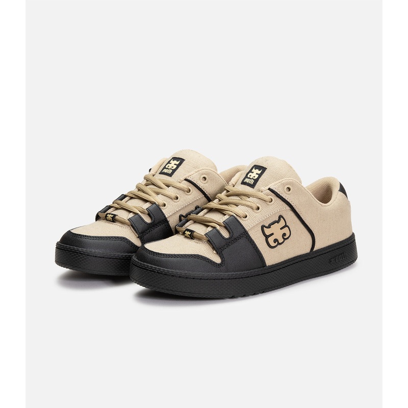 Hemp and leather upper with a black rubber cupsole.