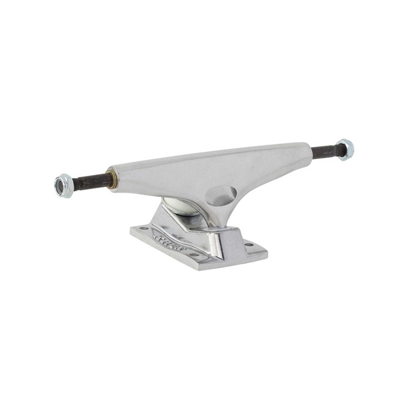 The New and improved K5 Krux DLK Down-Low Kingpin Truck has all the improved features of our new K5 standard truck including the Pur-fect Turn, a quicker turning geometry, a new pivot shape & more durable injection molded pivot cup, re-designed hanger and sexy-ass baseplate with a revolutionary inverted kingpin that locks into a shaft-nut baseplate, for ultimate grind clearance, strength and rigidity.