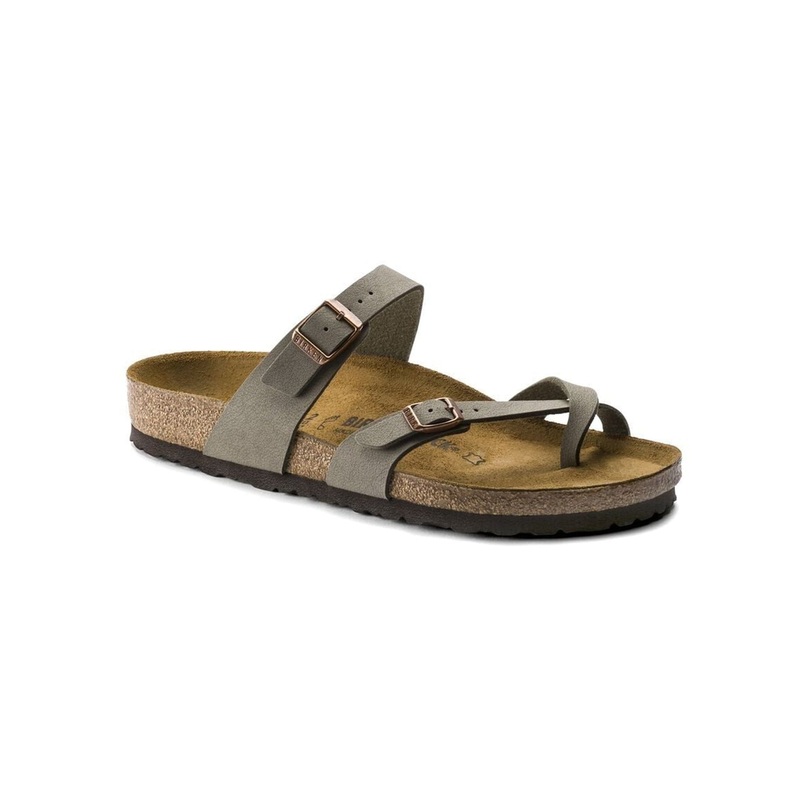 Supremely comfortable with sophisticated, crisscross straps, the Mayari redefines the thong sandal with a single toe loop. The style comes in smooth Birkibuc for a brushed, nubuck-like finish. Complete with classic BIRKENSTOCK design elements, like adjustable buckle closures and a contoured footbed for the ultimate in support.