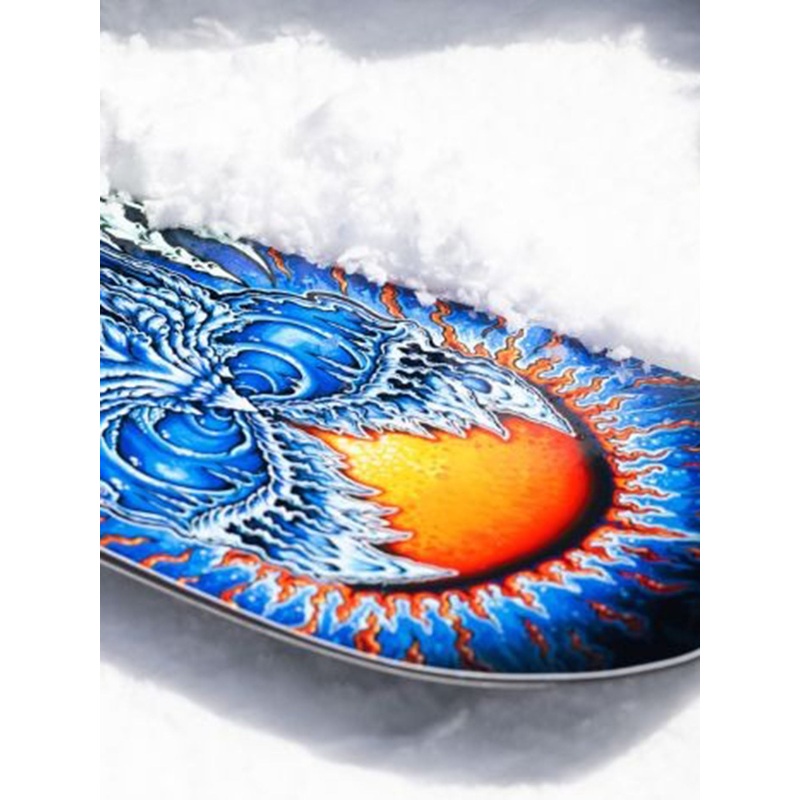 Matt Biolos all new surf inspired ripper. The Rocket features a brand new shape, progressive elliptical sidecuts paired with a powerful set back camber and stance to create the ultimate hard pack carving power trenching machine. An easy initiating and extra floaty early rise nose and powerful poppy tail rip through the storm and shine in every condition on the mountain. A mid wide shape has lots of planning surface explodes through no toe drag power turns and floats the soft stuff. A firm flexing, sustainable Aspen/Paulownia wood core, rugged sintered base and eco-sublimated graphics will have you blasting around the mountain all year long. This Rocket is balanced to perfection and always ready for lift off.