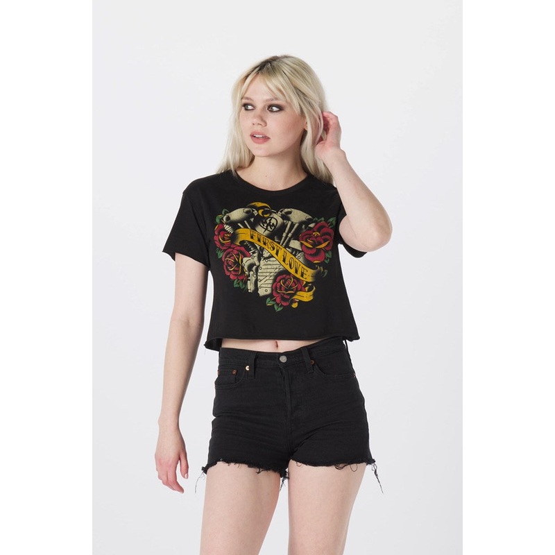 The Metal Mulisha MaidensFirst Love CropT-Shirt in Black features a large front hit.