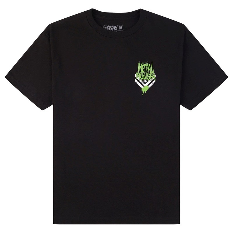 Metal MulishaSplit Tee inBlack with a small front chest hit and large back hit in Green and White.