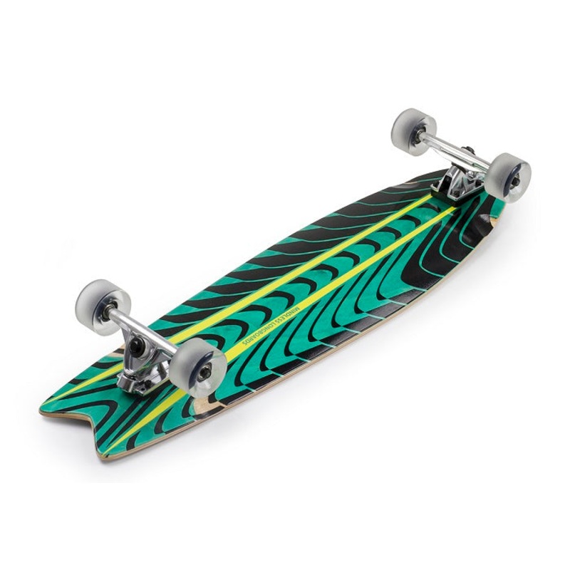 The Mindless Rogue Swallow Tail Green Longboard measures 34″ long by 9.7″ wide. This board sits in the middle of being a large cruiser and a small longboard essentially giving you the best of both worlds as it is very stable but also pretty nimble. Ideal for beginners or for people who don’t fancy a full on longboard.