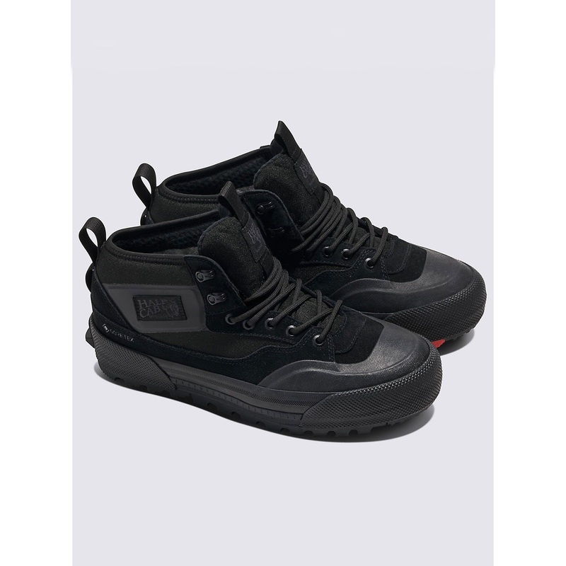 Worlds. Have. Collided. The Half Cab, one of Vans most recognizable heritage skateboarding shoes, snaps on MTEs pinnacle technical package to create the beast-est mid-cut of all time. Thirty years in the making, the MTE Half Cab GORE-TEX combines iconic skate style and swagger with GORE-TEX breathable waterproofing, GORE-TEXs Duratherm insulation, and the All-Trac all-weather rubber compound designed for maximum traction. The MTE Half Cab GORE-TEX is made with leather, textile, and synthetic uppers.