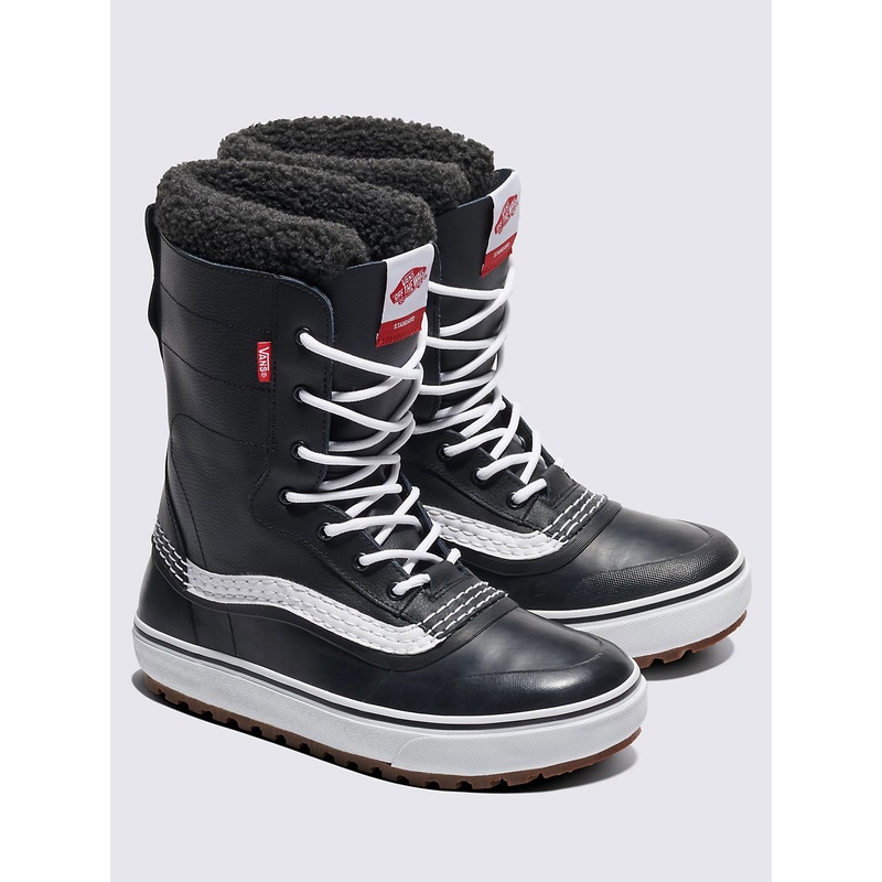 The Standard Waterproof Boot is the modern standard in winter bootswaterproofing, warmth, and traction wrapped in Vans style. Complete with a waterproof vulcanized look, heavy-duty felt liner, and Standard Snow MTE outsole featuring All-Trac all-terrain rubber, this Sidestripe snow boot is a contemporary cold weather classic in the Vans family, and the obvious choice for all your winter needs. It is made with leather and rubber uppers.