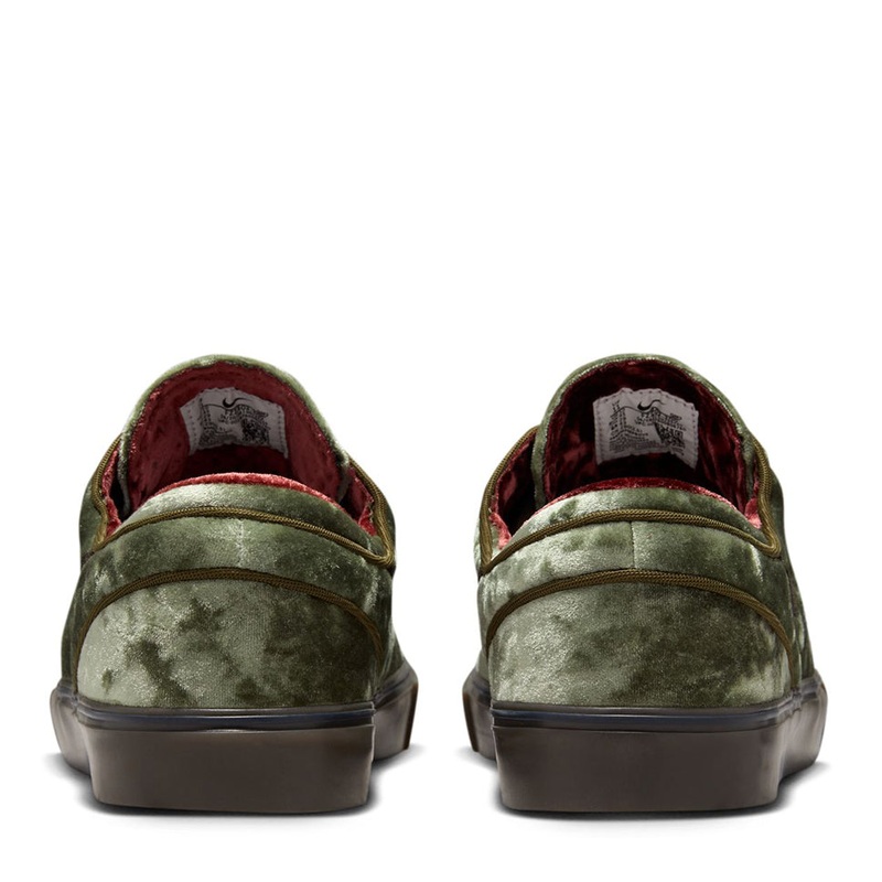 The medium olive and velvet brown Janoski OG+ SE from Nike SB pays tribute to the city of Paris. Dubbed the City of Cinema colorway, the shoe features embroidery and theatre stage inspired graphics bridging the gap between skateboarding and cinema