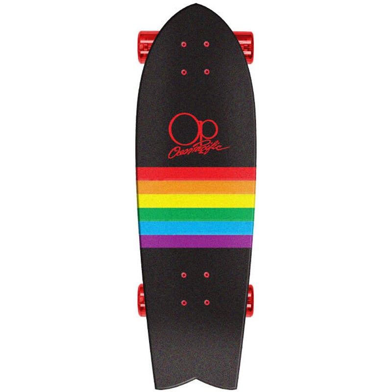 Ocean Pacific Sunset Surf Skate in Black and Red measuring 32″ long by 10″ wide. We are loving OP’s retro surf graphics and the bright loud colours on their boards. This surf skate board is ideal for keeping your surf game on point during the off season or for enjoying that surf feeling all year round.