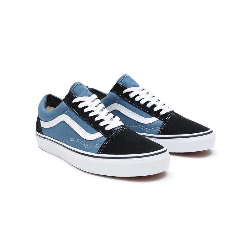 First unveiled back in 1977, the Vans Old Skool has been near the top of the bestseller list ever since thanks to its classic fit and instantly recognizable design. This black and navy version takes the Classic look and brings up a notch, allowing the twin shimmer of black and navy to breathe new life into the shoe. Reinforced toe caps, supportive padded colors, and the signature rubber waffle outsoles take care of the practical side, while the color speaks for itself. The Old Skool Primary is the obvious choice for anyone looking to bridge the divide between iconic and innovative.
