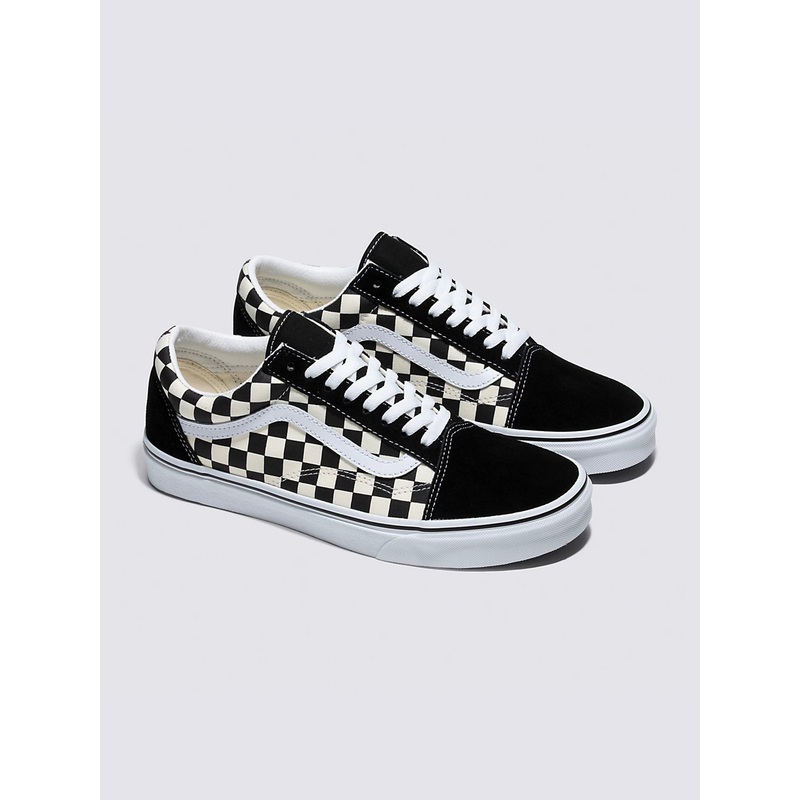First known as the Vans #36, the Old Skool debuted in 1977 with a unique new addition: a random doodle drawn by founder Paul Van Doren, and originally referred to as the jazz stripe. Today, the famous Vans Sidestripe has become the unmistakableand instantly recognizablehallmark of the Vans brand. Constructed with durable suede and canvas uppers featuring a vibrant checkerboard print, the Primary Check Old Skool pays homage to our heritage while ensuring that this low top, lace-up shoe remains as iconic as ever. It also includes re-enforced toe caps, supportive padded collars, and signature rubber waffle outsoles.