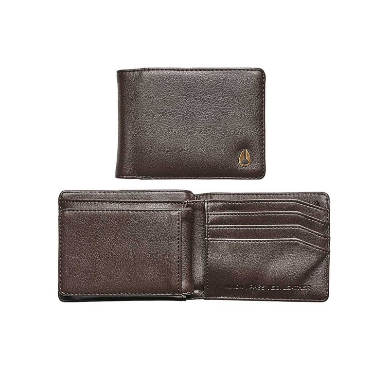 Vegan leather wallet with embossed interior lining. Features easy-access currency sleeve, and custom metal logo rivet at front. Inside is a removable slim wallet that holds cards. Vegan leather. Embossed interior lining. Removable slim wallet. Zip coin pocket. Easy access currency sleeve. Custom metal icon rivet at front.