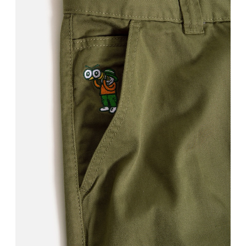 100% cottontwill cargo pants with an embroidered logo on change pocket, straight leg and a semi baggy fit.