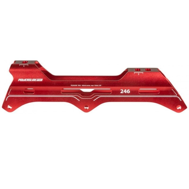 Pair of Powerslide Pleasure Tool SC110 Frames in Red which are 246mm long. These will hold a 3 x 110mm wheel setup. Pleasure Tool frames are designed for urban freeskating, crafted from 6061 aircraft aluminium and CNC machined to perfection they are super light and incredibly strong.