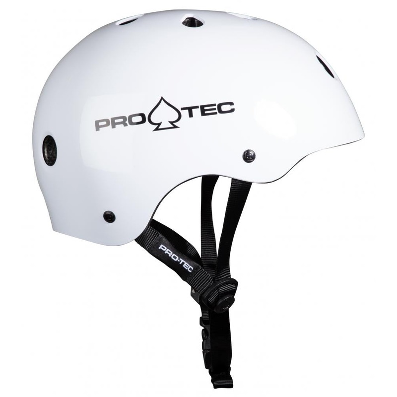 This is the Pro-Tec Classic Certified Helmet in Gloss White, a go to helmet suitable for skateboarding, rollerblading, scooter or BMX. The Classic Certified Helmet features Pro-Tecs most durable outer high impact absorbing ABS shell, 11 open vents and an EPS foam liner with compression moulded padding.