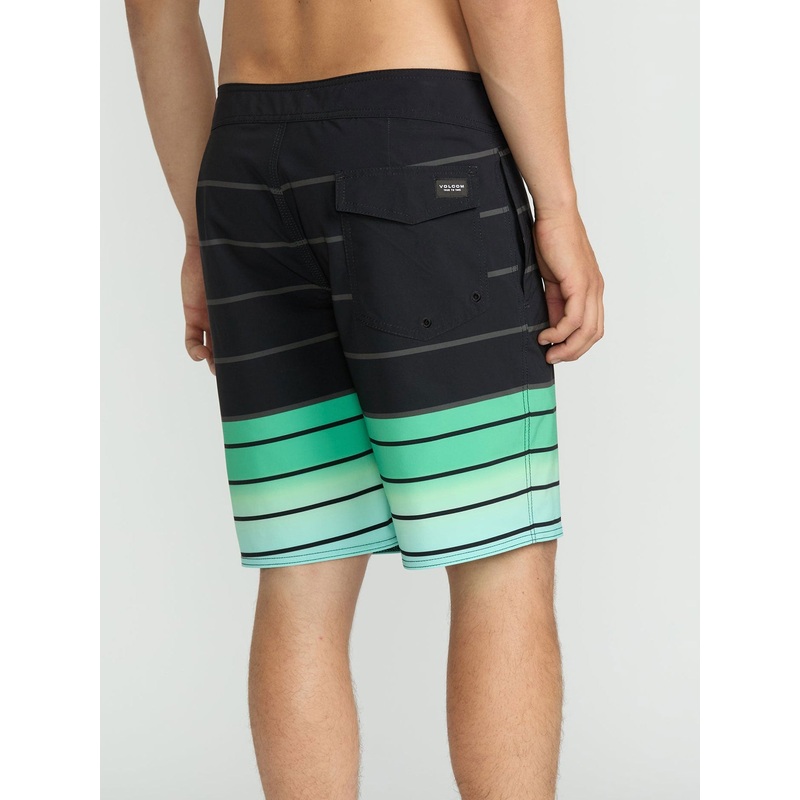Polyester-elastane blend trunks with sporty 8.75″ inseam, back patch pocket, side hand pockets, and cinch fly. Signature woven labels.