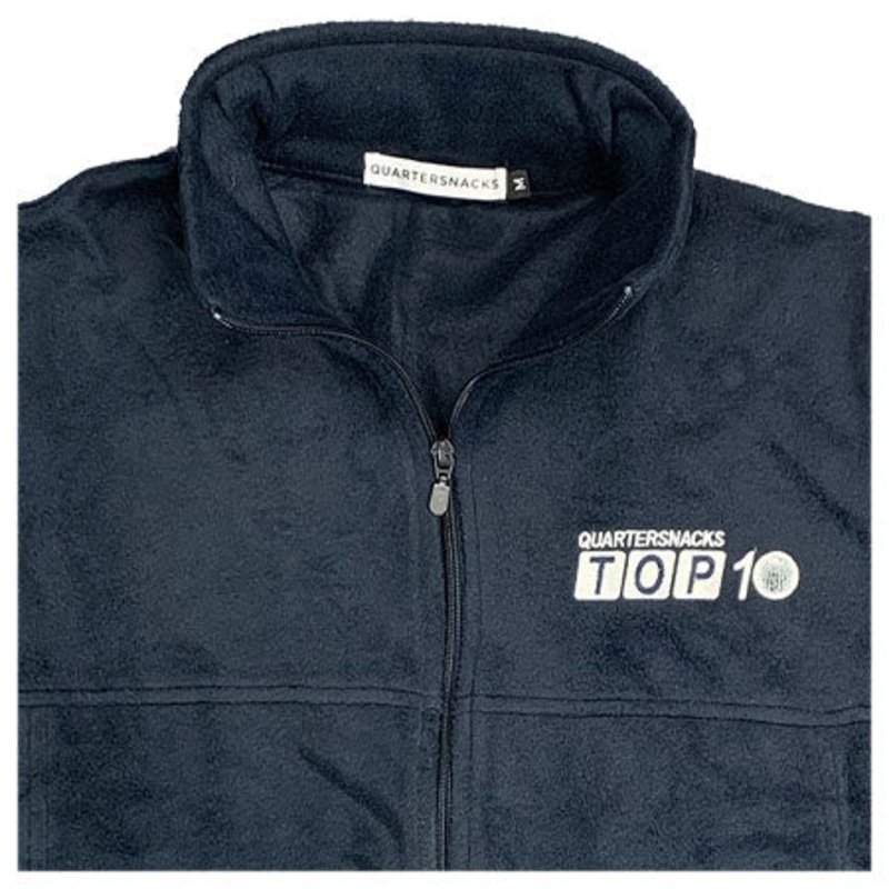 The Top 10 Zip Fleece features a Quartersnacks Top 10 embroidered logo on the left chest.