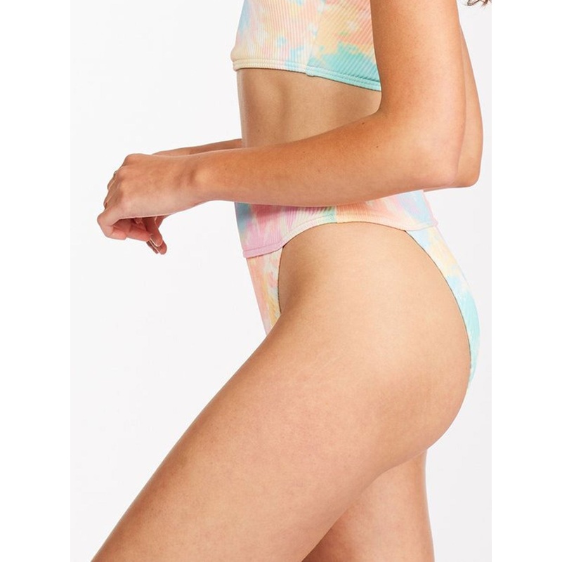 Add a splash of color to the lineup with the Rainbow Tide Aruba bikini bottom. Tie-dyed with high-vibe hues, this women’s bikini bottom features a colorful print on recycled rib fabric. Our signature Aruba is ideal for surf and saltwater sessions, offering medium bum coverage with a high-waisted fit that sits just below the belly button.