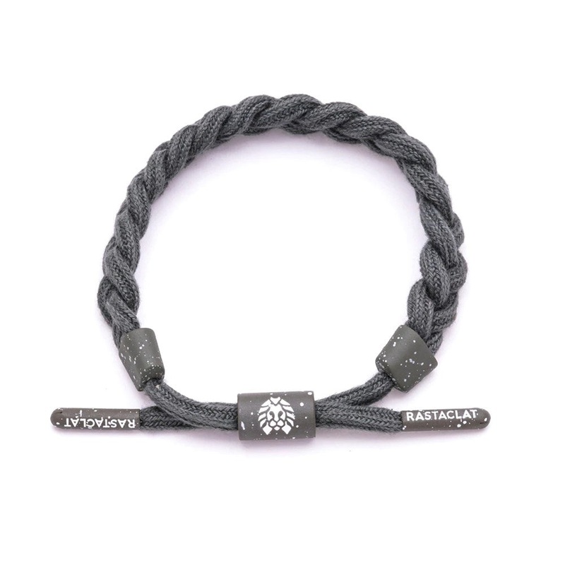 A classic braided bracelet in a black hue features extra soft lace, speckled hardware and contrast emblems.