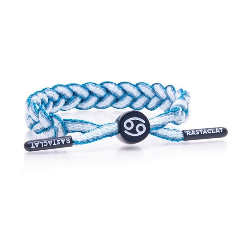Blue braided bracelet featuring navy electroplated hardware and contrast emblems with Cancer symbol on the barrel. Comes in exclusive Cancer collectors box.