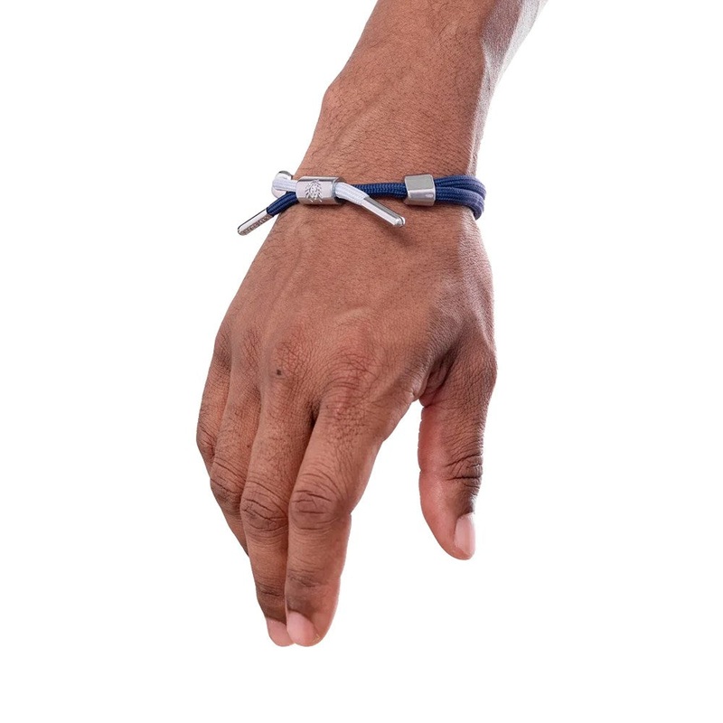 Hand-crafted Knotaclat bracelet featuring a two-tone polyester lace and high-polish chromium mirror finish hardware with no fill for a tonal look.