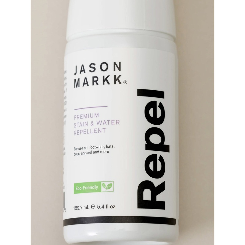 Jason Markk Repel creates a durable, breathable barrier that effectively repels liquids and stains. Its PFOA-Free water-based formula is safe to use on all materials like suede, nubuck, leather, nylon, canvas and more. Weve totally reformulated Jason Markk Repel to deliver a better-than-aerosol spray quality, without causing harm to our planet. Engineered with multi-patented technologies, a fine mist combined with a continuous spray functionality covers large areas quickly and evenly in all directions.