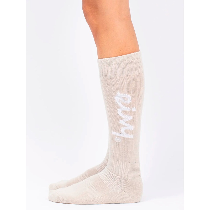 Ribbed beige sock perfect whether you are on skis or snowboard. The design is loaded with tech to stop you from freezing in any condition, the Rib Wool socks can go from the mountain to the club and back. Padded footbed and toe pocket, ankle flex zone and ribbed grip zones. Woven patch detailing and merino wool blend for warmth and durability.