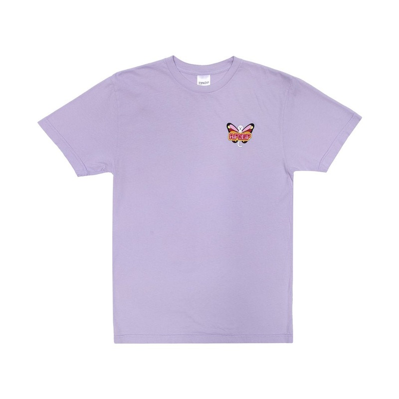 The RIPNDIP Butterfly T Shirt in Lavender is new for winter, screen prints on the front and back. 100% cotton.