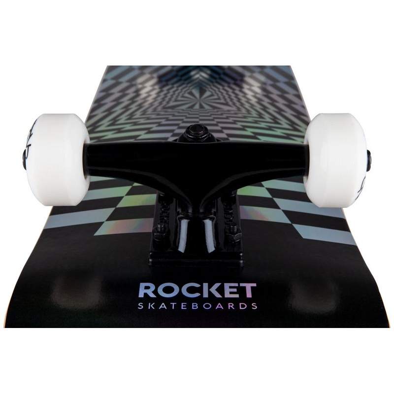 Rocket Prism Foil Silver Skateboard measuring in at 7.75″ wide. These boards come with a 7 ply Hardrock Maple Deck with a foil finish, 5.25 Black trucks, 52mm wheels and abec 5 bearings.