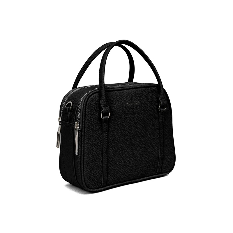 Small satchel with double zippered compartments. Comes with a detachable and adjustable crossbody strap.