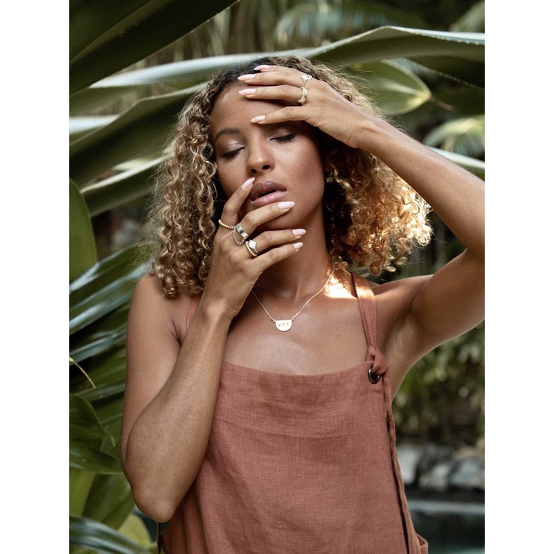 A lustrous ring just large enough, on which a pretty chain is hangs. As your hand moves, so will the chain and the look of it is simply beautiful!
