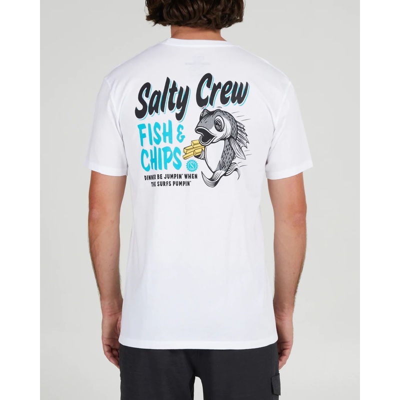The Fish And Chips Premium S/S Tee is a S/S Premium Tee featuring 30 Singles combed ringspun and screenprinted front and back.