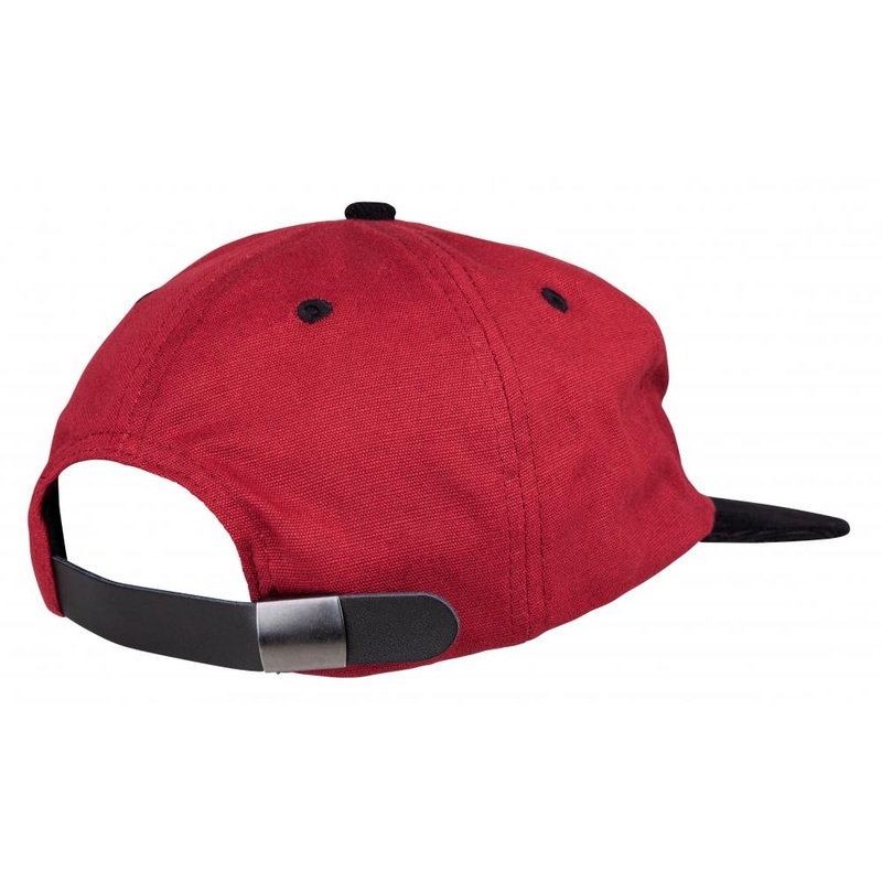 The Santa Cruz Cap Rigg Cap in Brick Red features a patch sewn onto the front of the hat, simple and smart.