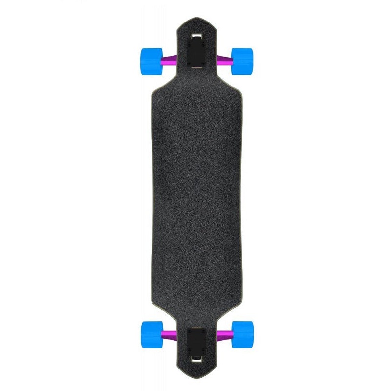 The Santa Cruz Mandala Hand Drop Thru Longboard measures 36″ long by 9″ wide. It features a medium sized drop through shaped 9 ply deck with Bullet 180mm RKP trucks and 60mm Slimeballs OG Slime wheels.