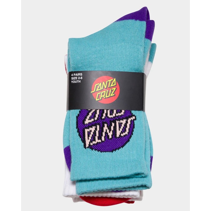 Girls Santa Cruz 4 pack of crew socks featuring jacquard knit of the Other Dot logo.