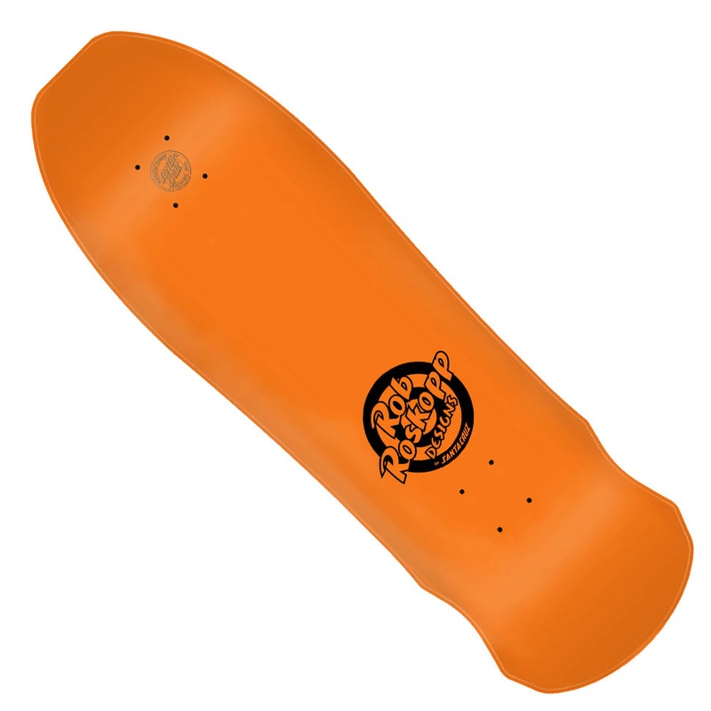 Santa Cruz Skateboards Rob Roskopp Face Reissue deck featuring newly remastered spot matte graphics on full dip orange deck with laser etched 2024 reissue decktop logo.