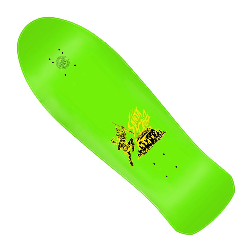 Santa Cruz Skateboards Steve Alba Salba Tiger Reissue deck featuring newly remastered matte graphics on full dip matte neon green with 2025 Reissue laser etched decktop logo. OG shape features adjustable 14.5-15″ wheelbase.