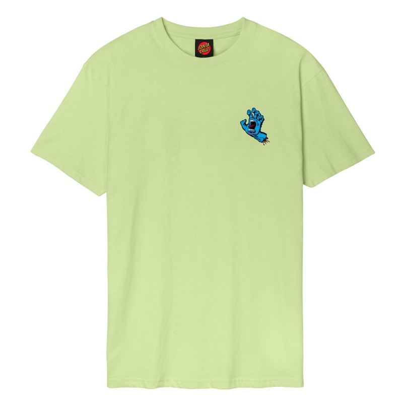 The Santa Cruz Screaming Hand Chest T Shirt in Matcha is a 100% cotton, 160gsm jersey, regular fit, short sleeve t-shirt with left chest print and back print.
