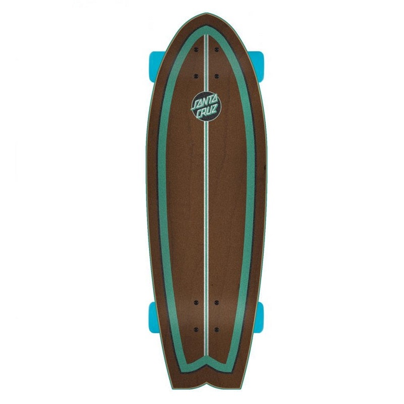This is the Santa Cruz Wave Dot Shark Cruiser Skateboard which measures in at 28″ inches long by 8.8″ wide. Classic Santa Cruz graphics and a full top print under clear grip makes this complete look incredible.