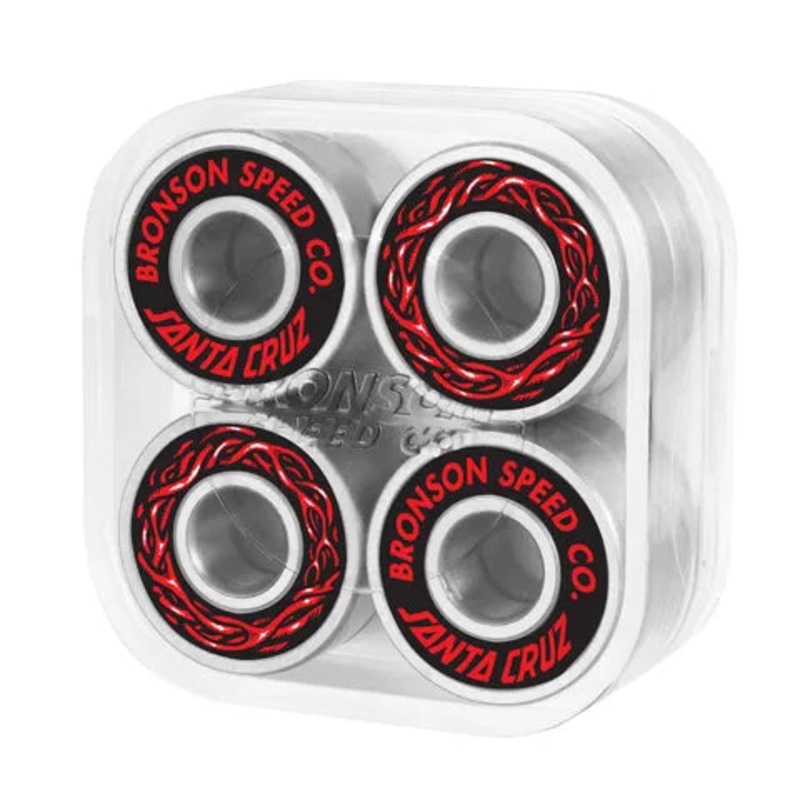 Bronson Speed Co X Santa Cruz Skateboards Screaming Hand G3 Bearings featuring super durable printed graphic shields and Santa Cruz laser etched outside bearing races.