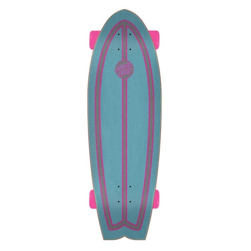 This is the Santa Cruzer Prismatic Dot Shark Cruiser Skateboard measuring 27.7″ long by 8.8″ wide. This complete comes equipped with 140mm Bullet trucks, angled risers, and 65mm 78a wheels.