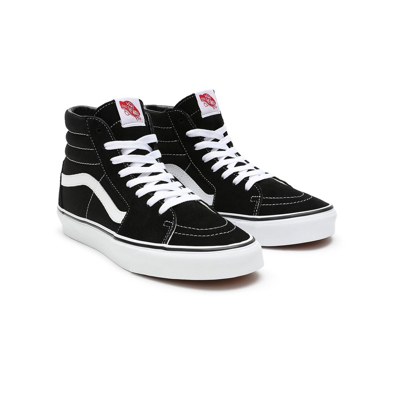 High-tops changed the sneaker game, and the Vans Style #38 was at the forefront of the revolution. Now beloved as the Sk8-Hi sneaker, this legendary high-top shoe blazed trails from the beginning. The sturdy suede and canvas uppers allow for maximum attitude. The foundation? Say hello to reinforced toe caps, supportive padded collars, and our signature rubber waffle outsoles. This classic Sk8-Hi shoe is as innovative today as it was in 1978, and every bit as groundbreaking. Tapping into our heritage, the Black & White Sk8-Hi has it all.